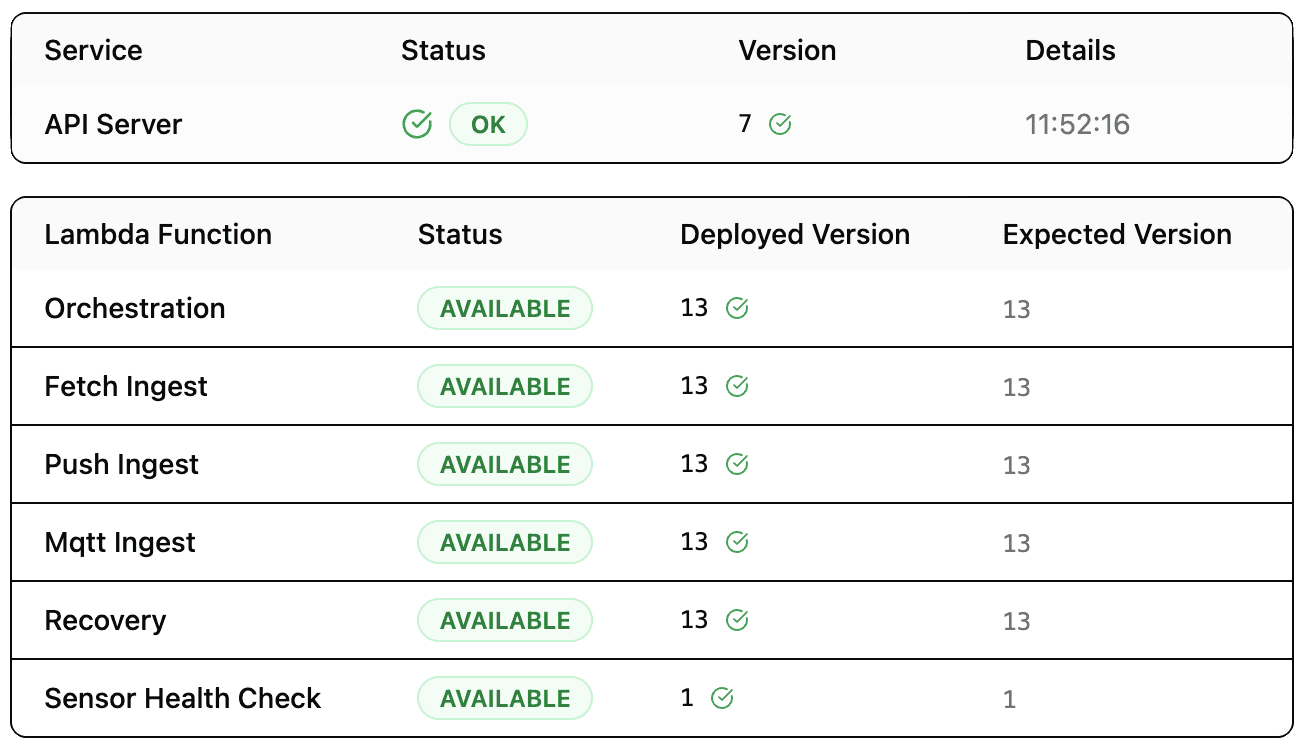 Frontend comparison: Your dashboard imports the same version map and highlights mismatches immediately.